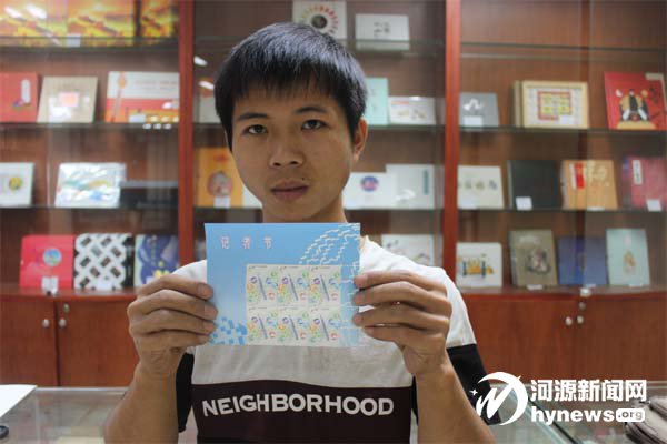11月8日,中國郵政正式發行《記者節》紀念郵票一套1枚,郵票面值為1.20元。這是中國郵政首次發行《記者節》紀念郵票。據悉,該套郵票采用了具有現代感的構成手法及色彩表達方式,畫面主圖案為鋼筆,象征著記者持弘揚民族精神、維護國家利益和社會責任的專業精神和自信風范。圖為一市民展示《記者節》紀念郵票。