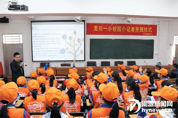 昨日下午,河源晚報校園小記者開班儀式暨校園小記者實訓基地揭牌儀式在龍川縣老隆鎮第一小學舉行。授牌后,本報 資深記者給60位小記者頒發“河源晚報小記者”榮譽證書。此外,同學們期待已久的小記者第一課——“我是小記者”開課,授 課老師幽默風趣的演講贏得了小記者們的陣陣掌聲。
