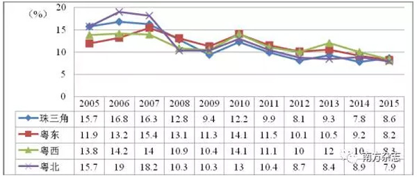 “堅實的制造業、發達的民營經濟與眾多的中小企業,這是佛山鮮明的產業基礎。”丁力分析,佛山以本地民營的中小企業為主體,2015年,佛山規模以上工業總產值接近2萬億元,僅次于深圳。其中90%為傳統產業,高新技術與新興產業僅占10%左右。“這種以內源經濟為主導的產業結構,曾在全球經濟危機時期釋放出強大的生命力。”