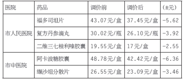 從表1、表2 可以清楚地看到,所列舉的檢查項目、藥品等費用都有不同程度的降低,反映醫務人員技術勞務價值的醫療服務價格則有相應的上調。市人民醫院相關負責人表示,改革實施后,醫院藥品價格下降的同時,醫院基本醫療服務價格出現了不同程度上調。以用藥為主的病人,比如高血壓、糖尿病等以藥物治療為主的慢性病患者,會感覺藥品費用降低比較明顯。但是診查、護理、床位、手術、中醫等反映醫務人員技術勞務價值和偏離市場價值的服務價格,費用可能有小幅度增長。該負責人強調,就個體而言,每位患者在就診疾病、治療方案、治療周期等方面存在個性化差異,因此患者每次就醫的花費會有不同變化。