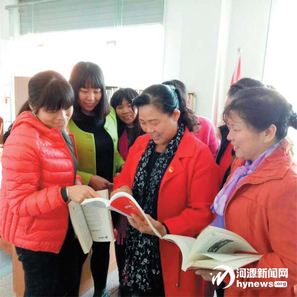 在河?xùn)|社區(qū),居委會(huì)干部與吳遠(yuǎn)芳一起學(xué)習(xí)黨的十九大精神。