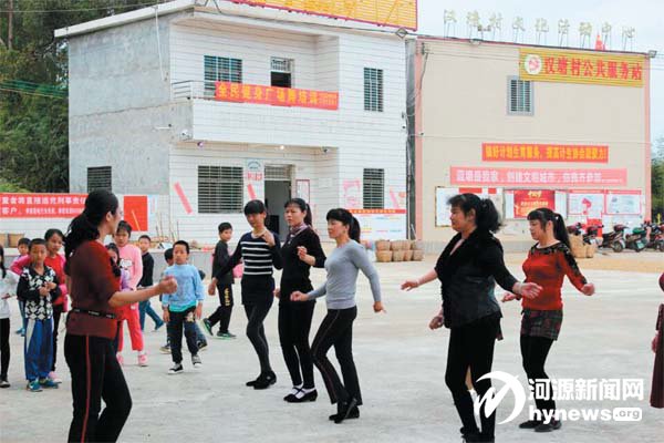 紫金藍(lán)塘漢塘村村民在村文化廣場(chǎng)上跳舞,大家的休閑文化生活比以前豐富(資料圖)。