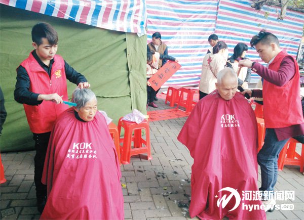 春節前夕是美發行業最忙的時候,河源市益剪服務隊的隊員們卻在最賺錢的時間,來到街心花園志愿驛站服務困難群眾,上門為有病殘的群眾理發。