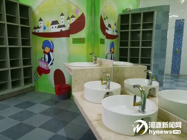七彩的外觀、墻上的卡通圖案、蹲位后面的弟子規(guī),兒童公園的1 號和3 號公廁處處透著童真童趣,還兼具了文化熏陶的功能,讓人眼前一亮,而這樣的外觀也使得公廁與兒童公園的整體環(huán)境融為一體。一改以往普通成人用的白色蹲廁,公廁里設(shè)置了更多兒童專用的小型七彩陶瓷蹲位,家長們再也不用擔心寶寶會滑進寬大的蹲廁里了。而男廁里的便器也變 “矮”了,不管是成人還是兒童都可使用。除了蹲廁與便器,為了方便游完泳后洗澡,位于兒童公園游泳池后的1 號公廁內(nèi)還安裝了一排花灑,市民均可使用。