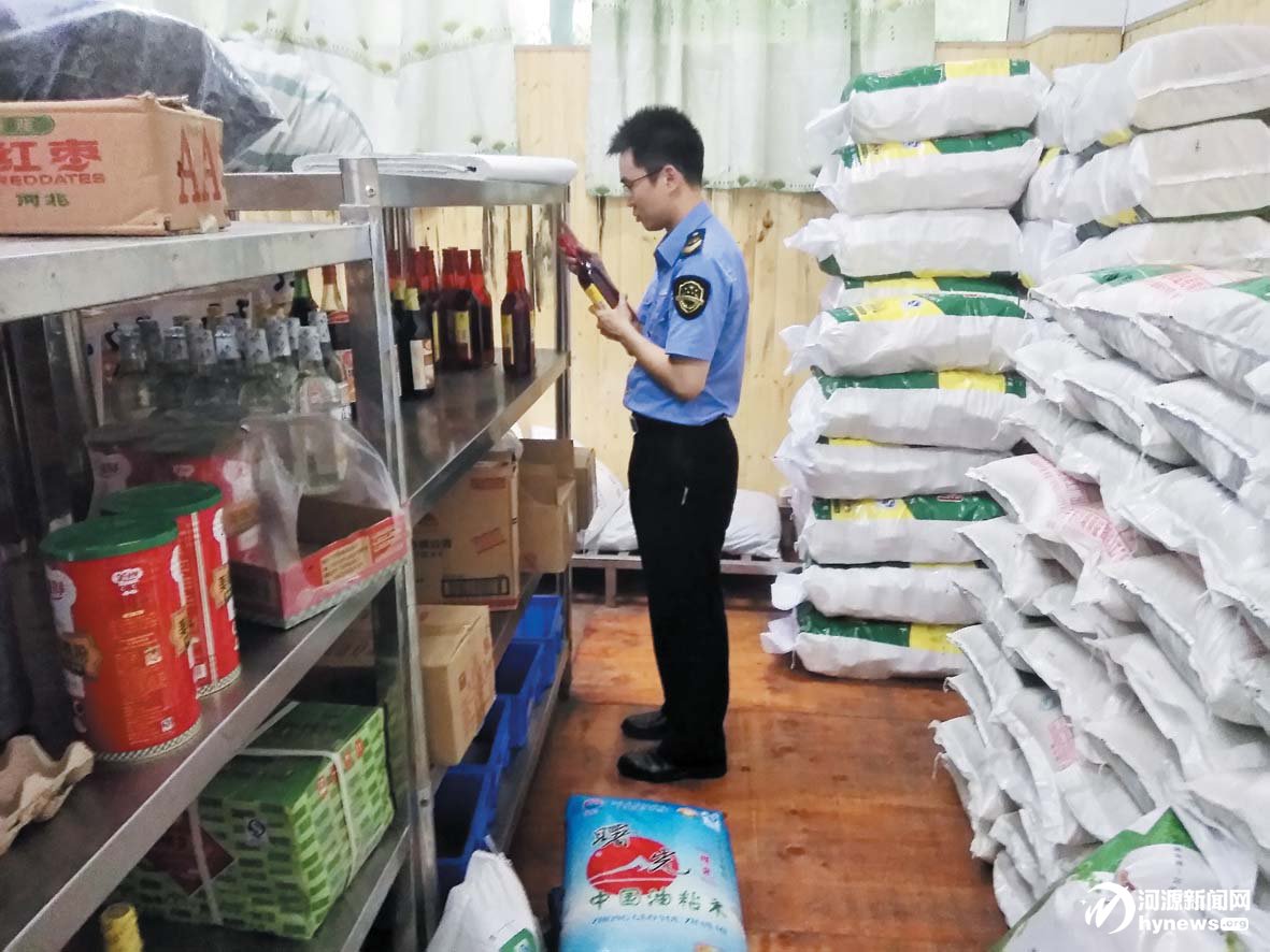 市食檢所工作人員對學校食堂原材料進行抽檢。