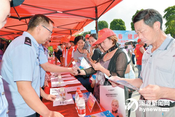 昨日,源城區(qū)禁毒委聯(lián)合源城公安分局、區(qū)檢察院、區(qū)法院等部門在源城區(qū)街心花園聯(lián)合開展“無悔青春,健康生活”禁毒宣傳活動,向社會各界和廣大人民群眾宣傳普及毒品知識、傳播禁毒理念、宣傳禁毒政策,震懾毒品犯罪。