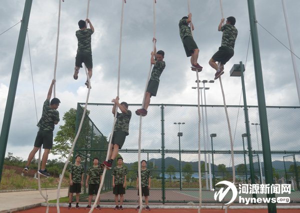 爬繩子,這是救護隊伍每日需要進行的體能訓練之一。