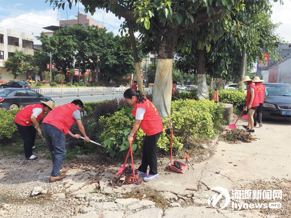 “清”是源城創文補短板九字訣之一,源城動員全員上下對路面垃圾、“牛皮癬”、違規菜地、二手貨物及宵夜檔占道經營行為等開展專項整治行動。圖為志愿者在行動。