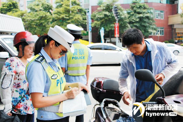 戴著白色警帽,穿著藍(lán)色短袖警服、反光背心、黑色長褲,腳上套著嚴(yán)嚴(yán)實(shí)實(shí)的黑色皮鞋,還有手上拿著的執(zhí)法本、腰間掛著的對講機(jī),“全副武裝”的女交警們在華怡路口嚴(yán)陣以待。當(dāng)天的執(zhí)法重點(diǎn)是違章摩托車和三輪車,在車水馬龍中,交警們需用肉眼和經(jīng)驗(yàn)判斷出問題車輛,上前截停并檢查。