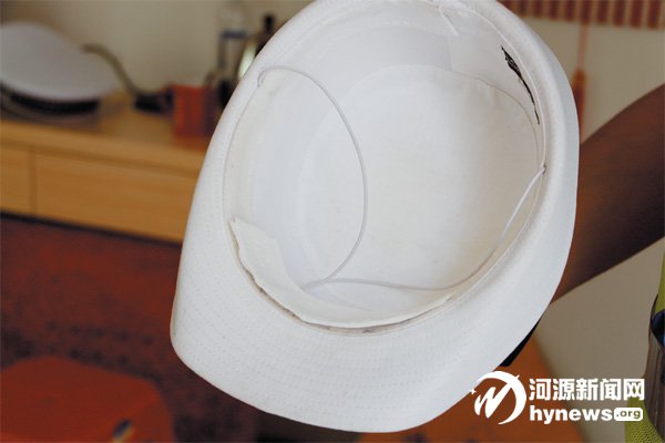 警帽內(nèi)沿放置的紙巾被汗水浸得皺皺巴巴。