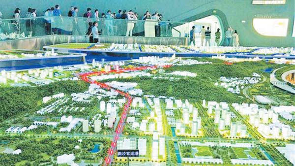 走進(jìn)南沙明珠灣區(qū),是一片 熱火朝天的景象,這里,正在為 誕生一個(gè)新城而做準(zhǔn)備。而在 明珠灣開(kāi)發(fā)展覽中心的沙盤(pán)上, 一座未來(lái)之城的形態(tài)已經(jīng)彰顯, 引人注目。