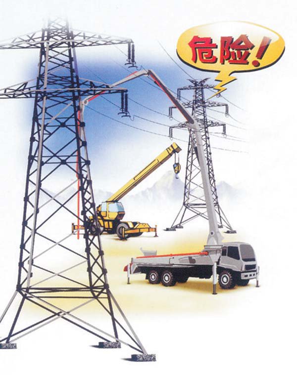 勿在地下電纜保護區內鉆探、打樁,在沒有報請電 力管理部門批準、對地下電纜鋪設情況不清楚的情況下 貿然施工,很可能會損傷地下電纜,造成事故。涉及輸 電線路保護區內的施工作業,開工前敬請報告電力管理 部門,在其指導下,采取安全措施后,方可進行。使用吊 車、水泥泵車、大型挖機等設備時,務必要注意機械臂與 輸電線路的安全距離,否則會引起短路、跳閘。各級電 壓導線水平安全距離為:1 千伏以下1 米,1-10 千伏 1.5米,35千伏3米,110千伏4米,220千伏5米,500 千伏8.5米。