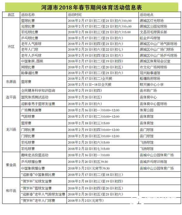 籃球是大家最愛的一項運 動,從正月初二開始,不少縣區、 鄉鎮也都舉行各種籃球友誼賽、 籃球賽、趣味定點投籃活動、“賀 歲杯”籃球賽,讓籃球運動員好好 秀一把;此外,足球、乒乓球、氣排 球、門球象棋、圍棋、羽毛球、廣場 舞、跆拳道、網球等比賽,將讓群 眾過足癮。
