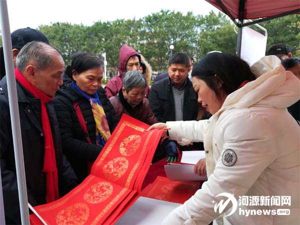 今天上午(2月3日),室外雖未像前幾天一樣陰雨連連,但低至3攝氏度的氣溫也使得空氣中寒氣逼人,然而河源晚報社聯(lián)合河源市書法家協(xié)會舉辦的“迎新春、送祝福”廣發(fā)銀行送春聯(lián)惠民活動現(xiàn)場卻熱鬧非凡,處處洋溢著暖暖溫情與歡聲笑語。我市8名知名書法家共聚一堂齊上陣,現(xiàn)場揮毫潑墨,為市民群眾們送上一幅幅喜慶春聯(lián),送上新春的美好祝福。