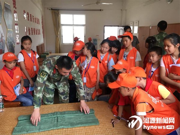 消防員教小記者們疊“豆腐塊”。