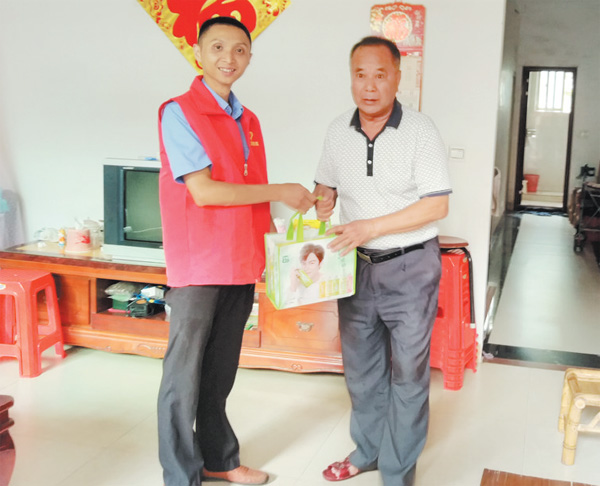 張建忠(左)經(jīng)常參與社區(qū)組織的慰問群眾活動。