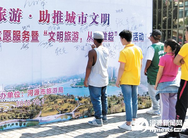 1日,市旅游局聯(lián)合源城區(qū)旅游局在巴伐利亞莊園舉行“踐行文明旅游·助推城市文明”——河源市旅游志愿者“十一”志愿服務(wù)暨“文明旅游,從我做起”簽名活動。活動中,志愿者還開展了文明旅游宣傳、景區(qū)交通指引和秩序維護,并發(fā)放了文明旅游·理性消費等宣傳手冊,不少景區(qū)工作人員和游客現(xiàn)場參與了簽名活動,承諾“文明旅游,從我做起”。