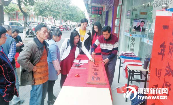 “門迎喜氣喜盈門,屋滿春風(fēng)春滿屋”“迎春接福人財(cái)旺,家庭和睦萬(wàn)事興”……前日,東源縣委老干部局 組織縣老干部志愿服務(wù)隊(duì)多名隊(duì)員到革命老區(qū)黃村鎮(zhèn),舉辦“迎新春送春聯(lián)”活動(dòng),為當(dāng)?shù)厝罕姮F(xiàn)場(chǎng)免費(fèi)寫 春聯(lián)100 多副。