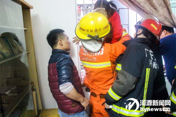 小孩被卡防盜網(wǎng) 消防員及時(shí)營救