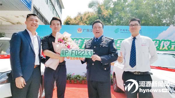 昨日上午,市公安局交警支隊聯合中國郵政速遞物流股份有限公司河源市分公司舉行了新能源汽車號牌首發儀式,并為新能源汽車號牌制作點進行了揭牌,這標志著 我市成為今年廣東省第一批啟用新能源汽車號牌的地市。首發儀式上,相關部門負責人還為兩位新能源汽車車主進行了車牌授牌。