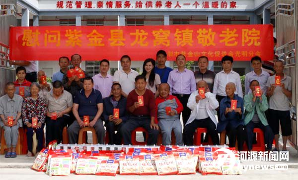 4 月30 日,紫金縣龍窩鎮(zhèn)敬老 院里一片歡聲笑語,暖意融融。為 傳承和弘揚“尊老、敬老、愛老、助 老”的中華民族優(yōu)良傳統(tǒng),當日上 午,深圳市紫金山文化促進會光明 分會會長黃少懷一行到龍窩鎮(zhèn)敬老 院開展慰問活動,為敬老院的19 位 “五保”老人送上牛奶、核桃粉等慰 問品和慰問金,讓老人們深切感受 到來自社會的溫暖。