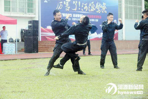 活動(dòng)以“厲害了!河源警察” 為主題,先后舉行了警務(wù)技能展 示、隊(duì)列大比拼、拔河、法律知識(shí)搶 答、大合唱等互動(dòng)節(jié)目和游戲,現(xiàn) 場(chǎng)氛圍濃厚歡樂,市民在活動(dòng)中真 正體驗(yàn)了一把警察生活。