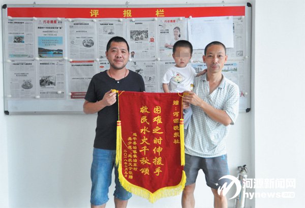 為了表示感謝,昨日上午,吳少忠帶著兒子特地前來本報社,向關注孩子的本報及記者送上錦旗。