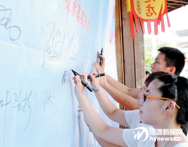 昨日,市食藥監局針對餐桌浪費等現象,在市區年輝漁村開展文明餐桌光盤行動簽名活動;顒游瞬蛷d員工、顧客等200余人參與并簽名。