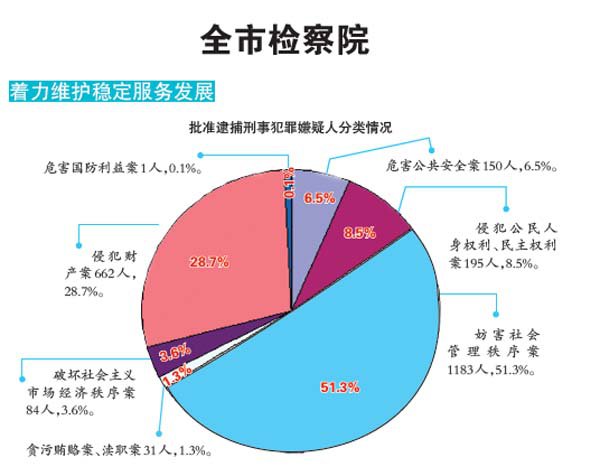1、認(rèn)真履行批捕、起訴職責(zé):共批捕 犯罪嫌疑人2306人,起訴2693人,同比 分別上升9.9%和6.4%。