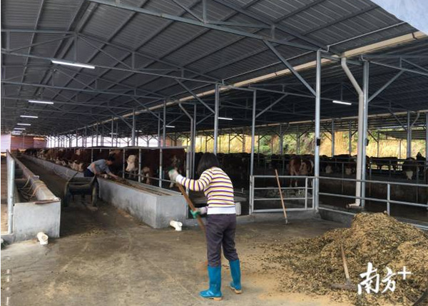 深圳市委政研室幫扶的龍川縣老隆鎮聯新村,借助“企業+合作社+農戶”的辦法養殖西門塔爾肉牛。 蔣才虎 攝