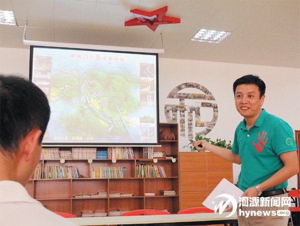 駐村扶貧工作隊(duì)相關(guān)負(fù)責(zé)人正就“興徑十景”介紹相關(guān)情況。