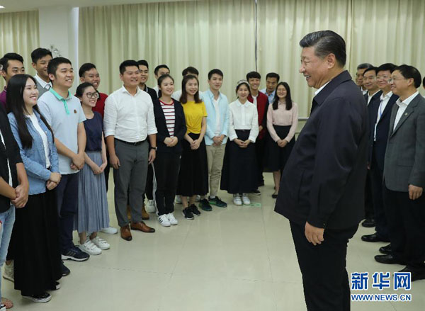 10月22日至25日,中共中央總書記、國家主席、中央軍委主席習近平在廣東考察。這是10月24日下午,習近平在廣州考察暨南大學時同部分港澳臺同胞和海外僑胞學生交流。新華社記者鞠鵬攝