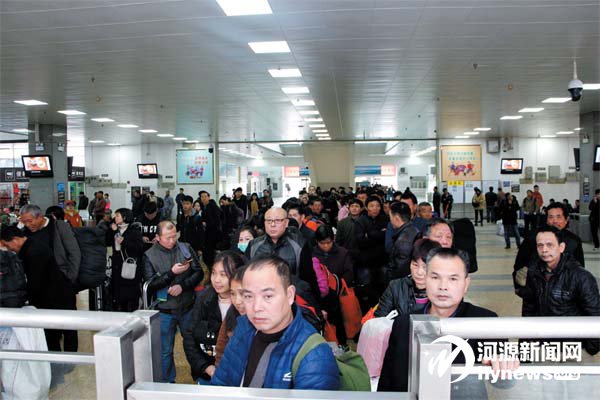 兜里揣著一個月前買的車票, 發車時間是下午5 點10 分。離上 車雖然還有十五分鐘,但顯然他已 經迫不及待,眼睛不時地盯著手機 上的時間,生怕錯過火車。徐先生 家在湖北黃石,目前在惠州做裝 修,因在當地購不到票,故轉車到 河源搭乘回鄉的班車。在候車大 廳里,徐先生身旁除了滿滿兩大包 行李外,還有一個白色油漆筒,他 說這是為了防止只有站票而用來 坐的,里面也放有行李,但有座位 的他,現在看來是有點笨重了。