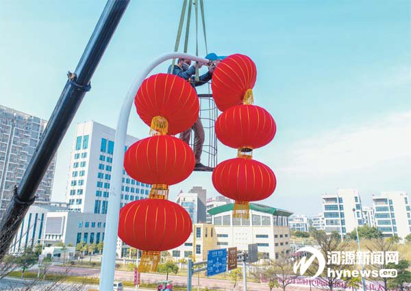上午,記者在市區建設大道、永和路、越王大道等主要 交通干道及部分公園、居民小區看到,不少地方已經裝扮 了起來,大紅燈籠高高掛起,到處都是“喜賀新春”“大吉大 利”等字樣的裝飾品,迎接新春到來的同時也為店鋪吸引 更多的顧客。