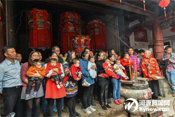 隨著鞭炮響起、獅鼓響起,在舞龍獅的助興下,村民們涌到祠 堂,忠信花燈上燈儀式正式開始。祠堂內外人頭攢動、人聲鼎沸, 司前村15名家中添丁的上燈村民先添燈油,再吟誦詩句,送花燈 上梁,祭祖敬宗,最后新丁入族譜。儀式中,村民們還誦讀了家 訓,傳揚遵紀守法、和睦親鄰、修身齊家等傳統文化道德精髓。