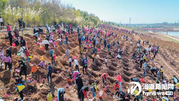 植樹現場一片熱火朝天。