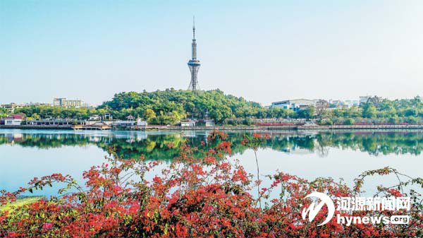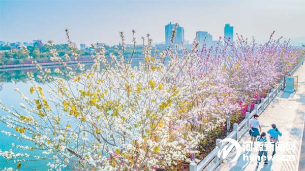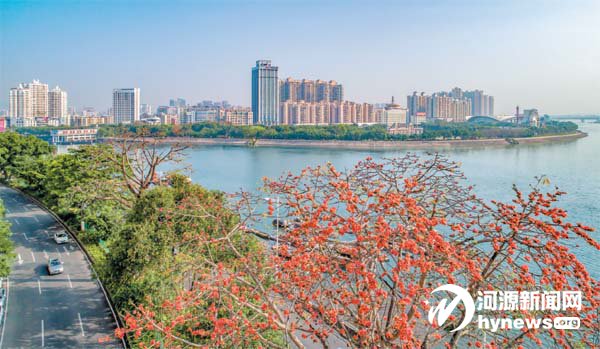 在市區(qū)新豐江(市政府河段)兩岸,紫 紅色的紫荊花爭先綻放,與簕杜鵑相互映 襯,倒影在江上,給每一位在江邊散步的市 民帶來愉悅的心情。而沿江路的幾株木棉 花,隨著近日來的氣溫回升,也開始綻放, 成為了市區(qū)一道靚麗的風景線。除此之 外,市區(qū)還有櫻花、桃花等等。