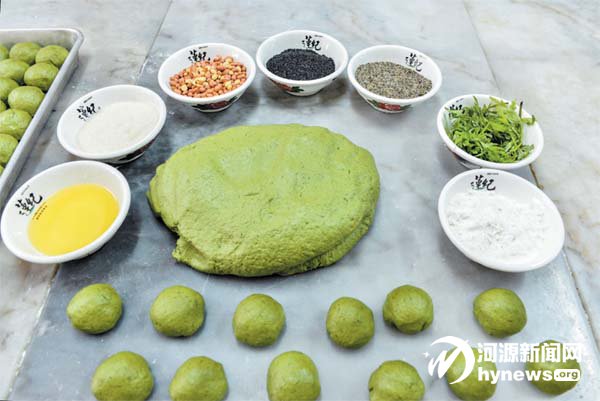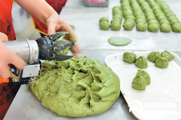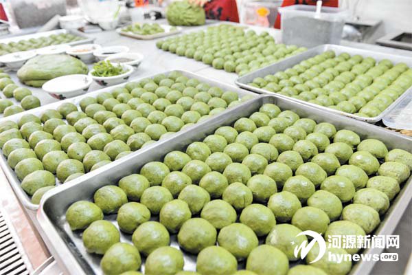一大早,劉麗莎和工人們就開 始做準(zhǔn)備工作了,與前幾天一樣,這 天要做的艾粄數(shù)額仍然是 2500-3000 個,這是一個大工程。 “平時我們也做艾粄,我專門承包了 幾畝地來種植艾草,但這畢竟是時 令性食物,一般每天做300 個左右 就夠了,清明前后艾粄需求量就急 劇上升,每天能賣出去近3000 個, 畢竟是家家戶戶都要吃的。”在和記 者說這些的時候,劉麗莎還時不時 停下來指導(dǎo)工人進(jìn)行材料配比。