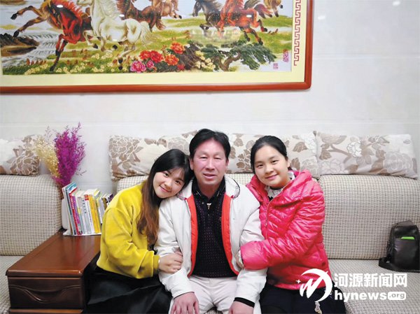 小婷(左一)幸福地依偎在爸爸身邊。