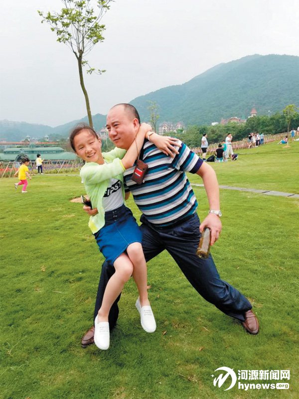 曾張粵湘給記者看了一張和父親曾立秋在深圳東部華僑城茶溪谷風景區(qū)的合照,畫面中,爸爸曾立秋身體前傾、雙手擺成超人的模樣,而曾張粵湘坐在爸爸的腿上摟著他的脖子,笑得十分開心。