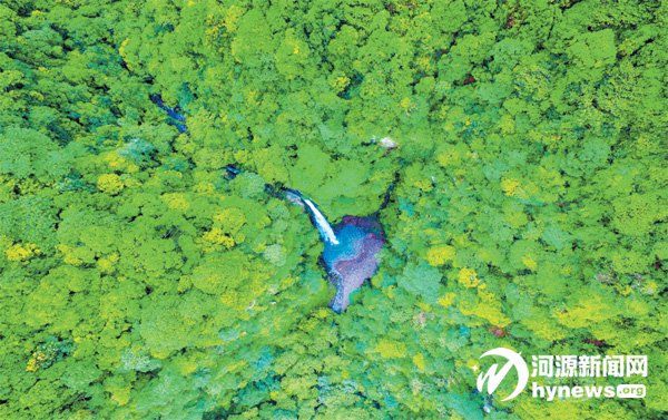 天坑天然形成的瀑布。