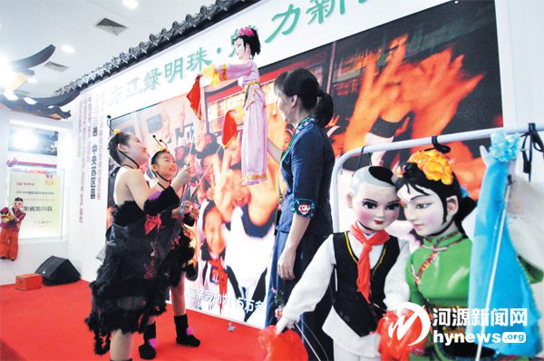 在寶博會現場,龍川縣市級非物質文化遺產手擎木偶戲吸引不少人參觀、學習。