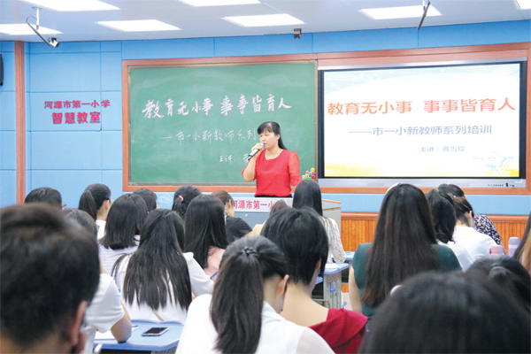 在本學期開學前幾天,雖當時還未開學,但河源市第一小學(以下簡稱市一小)的老師們就已然進入了工作狀態。為了幫助新老師盡快適應工作,學校組織了對新教師的日常教學、班主任工作、家校溝通等工作能力的培訓。像這樣以提高教師教學能力為目的分科組、分主題的培訓,每學期都會多次在市一小的教師之間,熱烈開展。