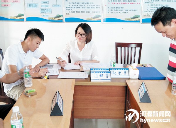 19日,東源縣仙塘鎮紅光村法律顧問賴國華律師來到村民黃先生家,就一起村民間的土地糾紛展開了解,進行筆錄。