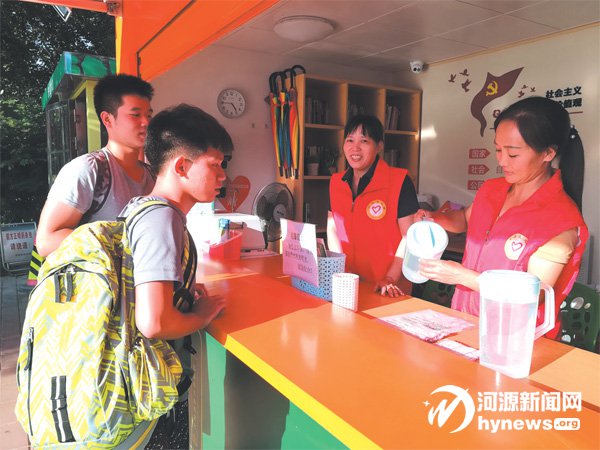 “你好,請問有什么可以幫到你?”在市客家文化公園志愿驛站,看到有群眾走過來,值班志愿者陳秀娥立即起立,面帶微笑地問。同伴黃紹蘭快手快腳地倒上兩杯水,遞了過去:“天熱,先喝杯水。”來人是兩名背著大包的青年,他們對這個驛站很好奇,喝了水后也沒有立即離去,而是向志愿者咨詢驛站可提供的服務項目。