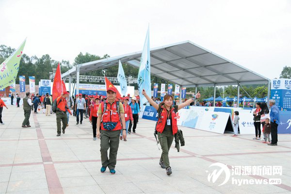 前日上午9時許,在獨具客家風情的文藝表演暖場之后,徒步活動正式開始!選手們高舉隊旗,雄赳赳、氣昂昂地向著目的地進發。作為2018年廣東省11條重點古驛道保護修復段之一,連平縣粵贛古驛道重點建設線路總長22.66公里,其中大湖鎮有15.49公里。此次徒步活動起點為大湖鎮湖東廣場,終點為何新屋,途經大湖寨、連平繡緞尚嶺村古驛棧道、關爺廟、青州風門坳、下壩沙場、甕潭水庫、大湖庫區村、黎明林場、湖西村(首屆縣工委舊址)等,全程約25公里。