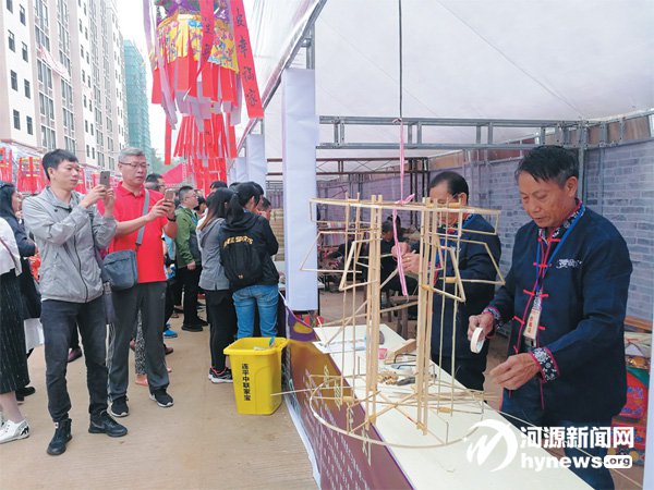 除了賞心悅目的連平古驛道之旅,主辦方還在大湖鎮湖東廣場旁,設置了民俗展示區,其主題是“多彩非遺美好生活”。活動期間,民俗展示區人頭攢動,30多個特色手工技藝展演和本土美食展區吸引了在場眾多人的眼球、味蕾。連平土陶、高莞織鯉魚、編竹籮、三角捏泥雞、上坪織布、忠信花燈……令你眼花繚亂;客家娘酒、忠信艾糍、蛋散、竹葉粄、燈盞粄、炸角仔……香氣撲鼻,讓你忍不住垂涎三尺。