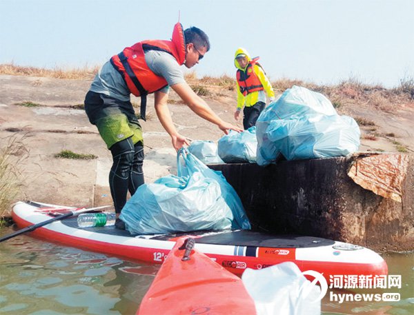 坐擁著大好河山的河源是戶外運動愛好者的天堂,這些戶外運動愛好者,可謂河源的資深游客,人稱“8哥”的葉玉萍就是其中之一。作為市戶外運動協會的會長,葉玉萍平均每周至少會組織一次戶外運動,登山、走驛道、越野、野炊、玩水上運動……不管玩哪一樣,葉玉萍都會在運動鞋、背包、水等運動裝備外加多一個大塑料袋或一把鉗,爬山時,有的手握一把鉗,有的手提一個大塑料袋,一邊在山間行走,一邊合作著將沿途的垃圾撿進袋子。他們撿垃圾的同時還向沿途游客宣傳環保理念,在山上豎立自制的“請把垃圾帶走”的宣傳牌,告訴游客不要帶火種上山、游玩后帶垃圾下山。每次活動結束,大家會攤開垃圾袋比拼一下,看誰的“戰利品”多,誰的收獲最大。