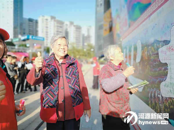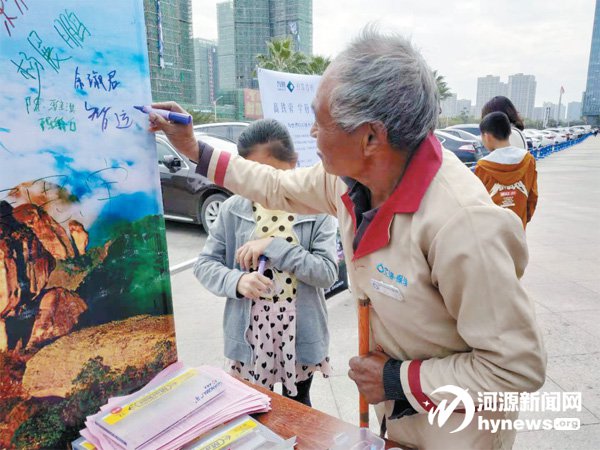 記者看到,頭戴小紅帽的志愿者們貼心地為市民做指引,引導市民在“愛河源”活動簽名區簽名,并拍下“笑臉”上傳。來自湖南的智運良大爺是堅基的一名保潔員,24日下午,他也在創文長卷上寫下自己的名字,支持河源創文。他對記者說道:“來河源4年,看著河源的高樓越來越多,環境越來越好,而且現在也有更多的人愿意多走幾步把垃圾丟到垃圾筒里,說明城市進步的同時,人的道德素質也在進步。作為生活在這座城里的一分子,創文的好自然是看在眼里,喜在心底。”