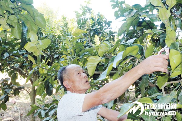 貧困戶李振文正在給柚樹剪枝,期待來年有個好收成。